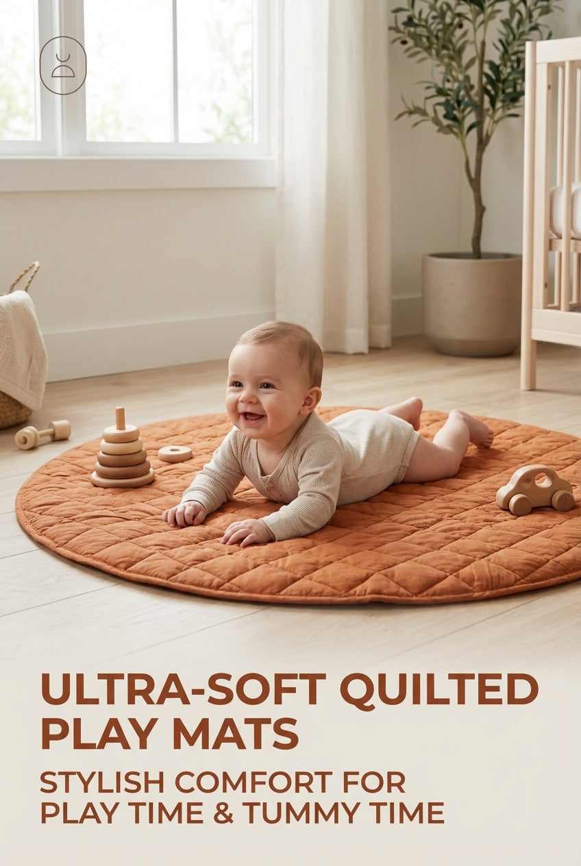 Woven from 100% organic cotton, our luxurious round quilted play mats provide maximum support and protection for bub during play time and tummy time, available in a selection of seasonal colours to fit seamlessly within your home.